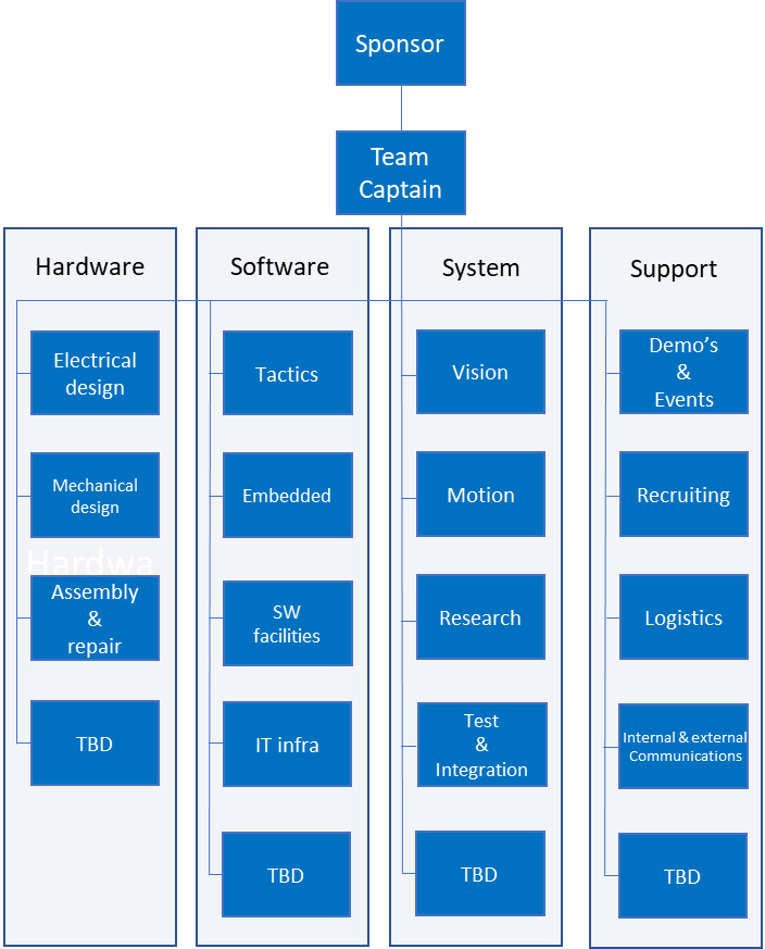 The Falcons is a fun team working on complex, autonomous robots. We do not have a formal, “ASML-like” organization in place; we are all volunteers doing this as our hobby. This gives our members a lot of freedom, but also a lot of responsibility: when the match starts, the robots need to be ready to win!